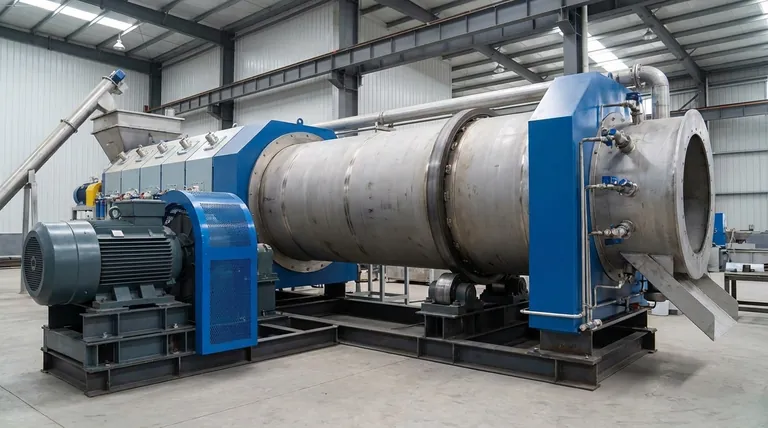 这是系统的核心:固定炉提供热量,内部回转滚筒容纳材料并将热量传递给它。