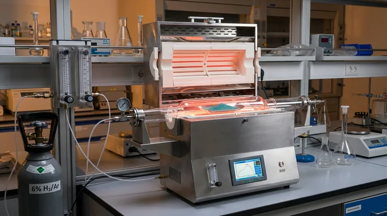 高精度管式炉是 Cu/ZIF-8 催化剂还原的关键控制容器,它能够在不破坏催化剂载体结构的情况下,将铜离子转化为金属簇。通过维持严格控制的还原气氛(具体为 6% H2/Ar)和大约 10 K/min 的精确程序升温速率来实现这一点。