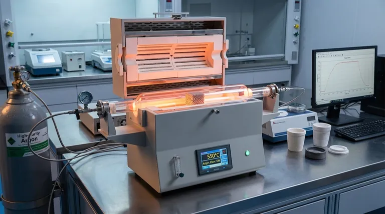 高温管式炉通过在 550°C 的高纯度氩气气氛中维持稳定的热环境来确保镁合金的性能。 这种严格无氧的隔离可防止镁发生危险的燃烧或剧烈氧化,同时持续的热量驱动固态扩散,将金属颗粒熔合为坚固的整体结构。