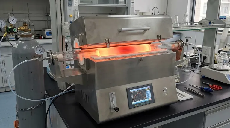 管式炉维持连续的氩气流,创造稳定、惰性的环境。这可以保护材料免受氧化,并确保化学反应严格专注于聚合物骨架的转化。