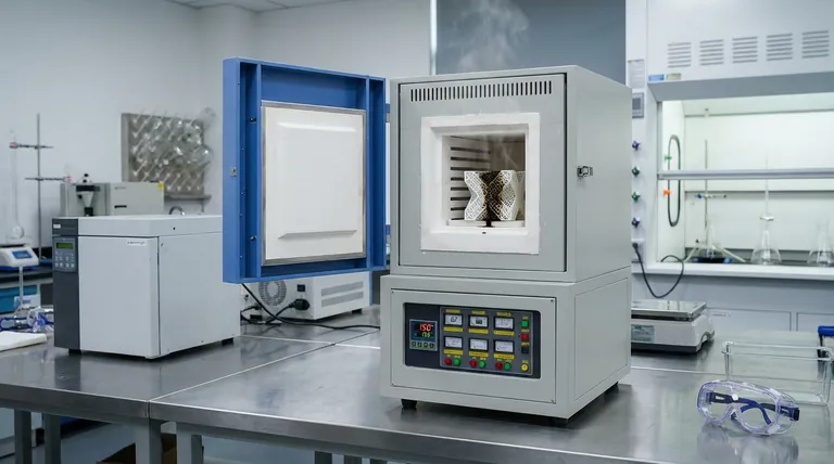 马弗炉充当结构生存的催化剂。它创造了“锁定”3D 打印形状所需的特定热力学条件,确保部件在后续加工步骤中承受极端高温时不会熔化或坍塌。
