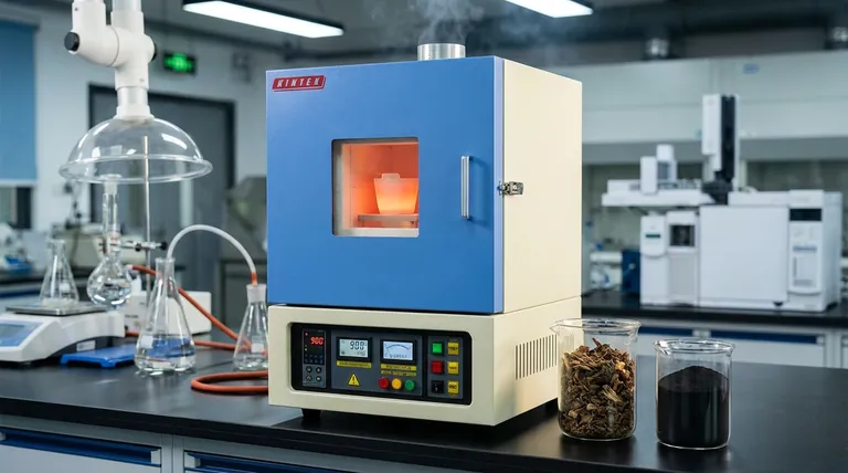 通过将温度严格控制在300°C至900°C之间,马弗炉控制着生物质向石墨碳的转变。它是产生决定材料最终吸附容量和催化能力的特定孔隙结构和活性位点的首选工具。