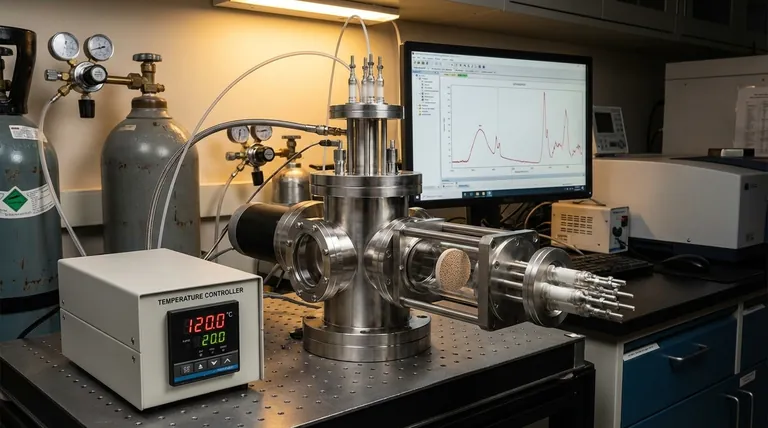 - 如果您的主要重点是确定反应路径:使用温控单元将反应稳定在低(30 °C)和高(120 °C)点,以追踪甲酸盐和 DOM 峰的演变。