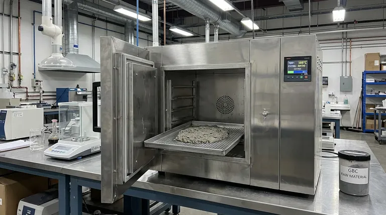 在绿色回填复合材料(GBC)生产中,工业烘箱的主要功能是从高水分的原材料中去除物理吸附水。 烘箱专门针对电石渣(CS)等原料,在恒定温度(通常为105°C)下运行,将不一致的进料转化为标准化的干燥基础样品,这是精确加工的前提。