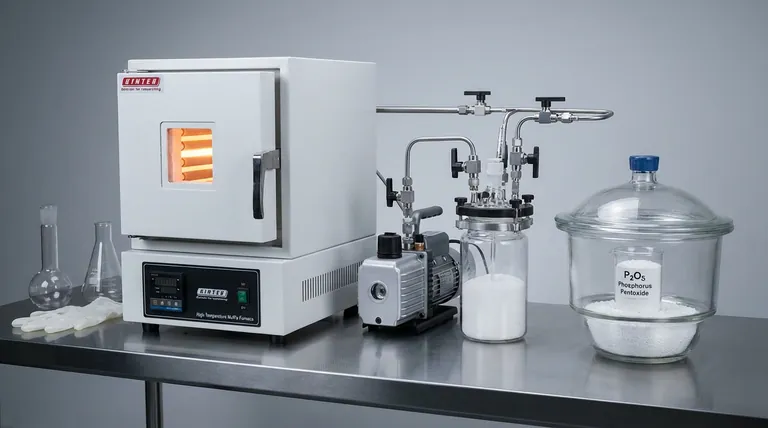 在电解液再生过程中添加五氧化二磷(P2O5)的主要目的是充当明确的湿气陷阱,防止水分重新回到电解液中。虽然加热会将水分子从电解液表面排出,但P2O5会立即化学吸收这些释放出的蒸汽。这确保了湿气被永久地锁住,防止在系统冷却时重新吸附到材料上。