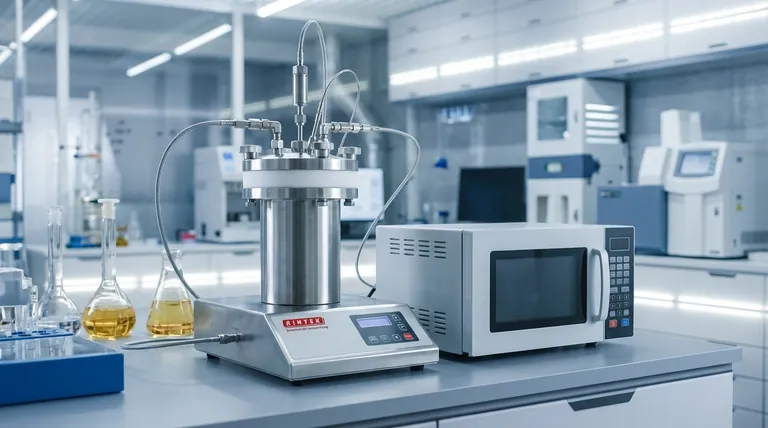 衬四氟乙烯(Teflon)的压力釜是微波辅助水热合成的关键容器,它提供了一个化学惰性且耐压的环境。它形成一个密封系统,使反应混合物能够达到合成二氧化铈(CeO2)所需的高温和高压,而不会受到污染。