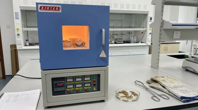 马弗炉创造了一个碳基生物组织无法承受的热环境。通过维持 550 °C 的温度,设备确保了幼虫有机结构的完全燃烧。