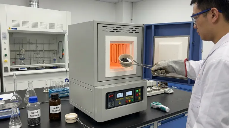 在钕铁硼(NdFeB)废料的回收过程中,实验室马弗炉充当氟化焙烧阶段的主要热反应器。它提供了一个严格控制的高温环境,促使废料与氟化氢铵发生反应,从而有效地释放出可回收的稀土元素。