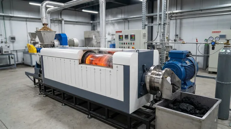 该装置在特定的氮气气氛下运行。这种惰性环境至关重要,因为它能防止生物质在氧气中燃烧。