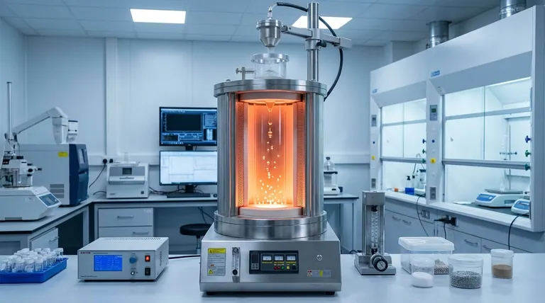 立式加热炉是原材料成型和熔化成精确几何形状的关键机制。 在纳米玻璃复合材料生产中,其主要功能是利用热精度和重力,将细磨的玻璃粉末转化为完美的球形微米级颗粒。