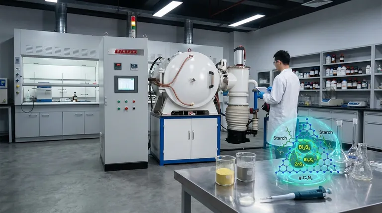 淀粉确保金属硫化物纳米颗粒(特别是 Bi2S3 和 ZnS)均匀分布在石墨碳氮化物 (g-C3N4) 载体上。它防止金属离子随机或不均匀地沉淀。