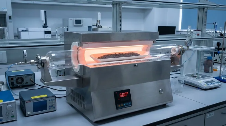 管式炉建立了一个高度稳定、温度受控的空气气氛,专门用于烧结 NMA 颗粒。在此涂层阶段,炉子将温度保持在 500°C 的恒定温度,持续 5 小时。这种特定的热环境旨在支持对温度稳定性和大气成分都敏感的化学反应。