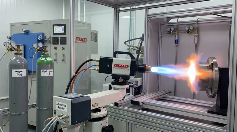氩气和氢气的组合提供了一个高焓、惰性的环境,这对于加工复杂合金至关重要。氩气创造了一个稳定的等离子核心,而氢气则充当热放大器,提供完全熔化AlCoCrFeNi颗粒所需的强烈能量,而不会引起有害的氧化。